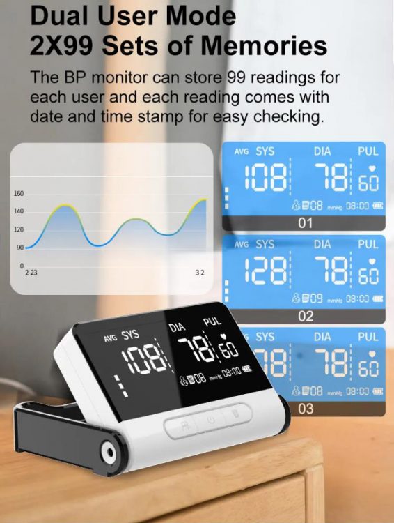 Ultra slim, stylish blood pressure monitor offers precise reading with dual user mode, memory recall, and versatile power options. With an irregular heartbeat detector and universal cuff, it’s a comprehensive solution for family health monitoring.